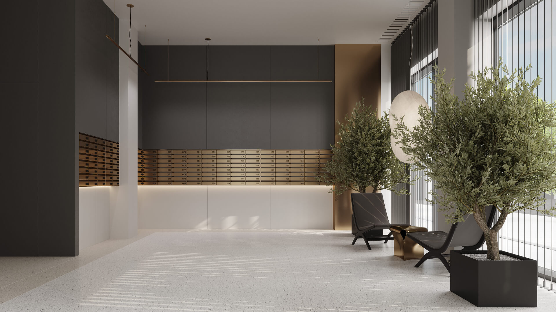 Общественные пространства INDY Towers оформлены в стиле японского минимализма, где доминируют натуральные материалы, геометрия и игра света. Grand Lobby становится не просто входной зоной, а полноценным пространством для отдыха, общения и медитации. Здесь нет лишнего — только воздух, природные текстуры, авторское освещение и динамичные композиции из живых растений. Простор и свет создают особую атмосферу комфорта и приватности.